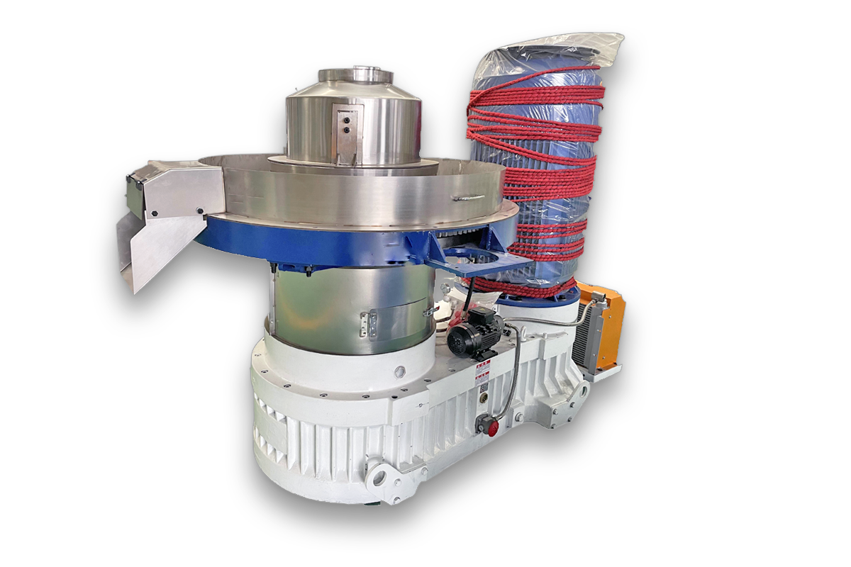 新式立式离心制粒机是目前国内最新型颗粒机,此结构颗粒机采用大模数硬齿面斜齿减速箱,主轴强化,动力输出强,设备使用稳定,故障率低,生产成本低,是生物质行业首选主机机型。